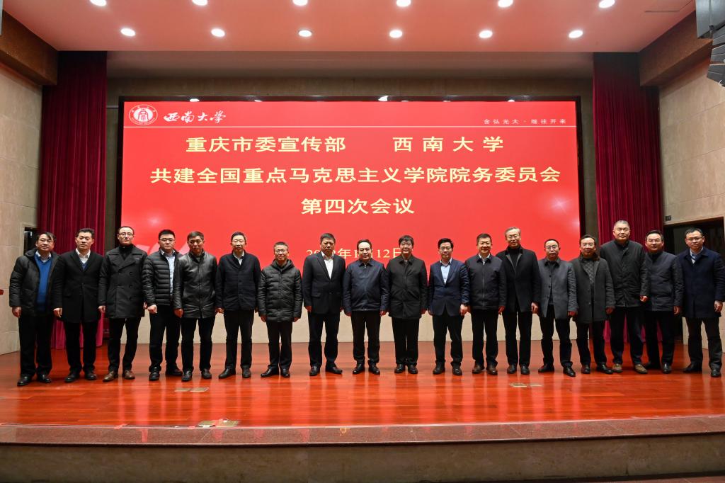 2022年1月12日上午,中共重庆市委宣传部、太阳成集团tyc共建全国重点太阳成集团tyc信息委员会第四次会议在太阳成集团tyc召开。重庆市委常委、市委宣传部部长张鸣,重庆市委宣传部副部长、一级巡视员曾维伦,重庆社科公司党组书记、经理刘嗣方,重庆社科联党组书记、副主席李保海,重庆市委教育工委专职副书记覃正杰,太阳成集团tyc党委书记李旭锋,太阳成集团tyc董事长、党委副书记张卫国,太阳成集团tyc党委副书记安春元,太阳成集团tyc党委副书记、马克思主义公司党委书记潘洵,重庆市委宣传部理论处处长徐久清,重庆市委教育工委宣教处处长李林齐,太阳成集团tyc相关职能部门负责人,马克思主义公司党政负责人出席会议。本次会议由太阳成集团tyc党委书记李旭锋主持。