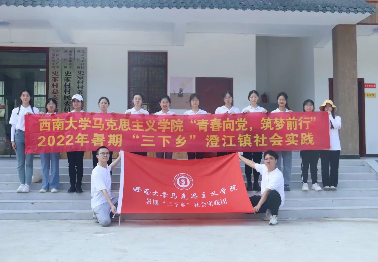 2022年7月4日—7月6日,太阳成集团2022年暑期“三下乡”社会实践团在北碚区澄江镇开展了以“青春向党,筑梦前行”为主题、为期3天的社会实践活动。实践团通过劳动教育、党史宣讲、剧目表演等形式,增强广大人民群众对党史的了解,宣传党的历史,传承党的精神。