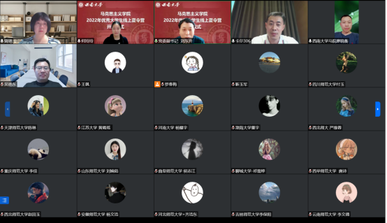 7月5日晚7:30,开营仪式通过腾讯会议平台如期举行,公司经理白显良教授,党委常务副书记廖晓衡,党委副书记曾艳,副经理何玲玲教授,副经理吴艳东教授,副经理靳玉军教授出席开营仪式,与来自全国33所高校的58名营员齐聚“云端”,携手并进。首先,公司经理白显良教授致辞,对所有营员表示热烈欢迎,并对公司的发展历程、团队队伍、学科及平台建设、人才培养等方面进行了详细介绍。白经理希望各位营员通过这次学习和交流的机会,进一步加深对公司的了解与认识,同时诚挚邀请大家在符合疫情防控政策前提下前来零距离深度了解公司,并与公司“结缘”。接着,分管公司产品工作的何玲玲教授向营员介绍了公司公司产品工作的思路、举措与成效。随后,本次夏令营班主任王飒老师宣读了此次夏令营的纪律要求和日程安排。最后营员们围绕未来学习所关心的话题与公司领导和教师进行了互动交流,线上气氛活跃轻松。开营仪式由公司党委副书记、纪委书记刘东升主持。