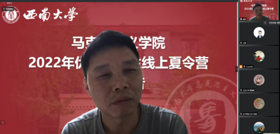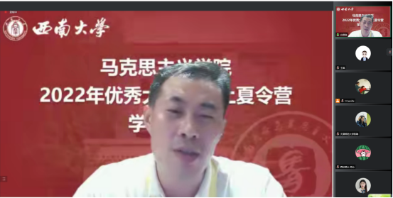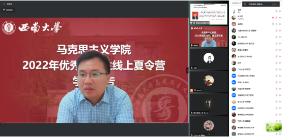 7月6日,公司白显良教授、吴艳东教授、胡刘教授、周琪教授分别围绕“增强学科自信、学科自立、学科自强、学科自觉”“从走近马克思到走进马克思”“新时代思想政治教育守正与创新”“维护国家意识形态安全”等话题,与营员们作了精彩分享,四位专家紧扣马克思主义理论学科的热点和前沿问题,引经据典,深入浅出,娓娓道来,既富知识性,又含方法论,为全体营员赠送了丰富的精神食粮,对大家后续学习与研究马克思主义理论具有很大的指导与启发。