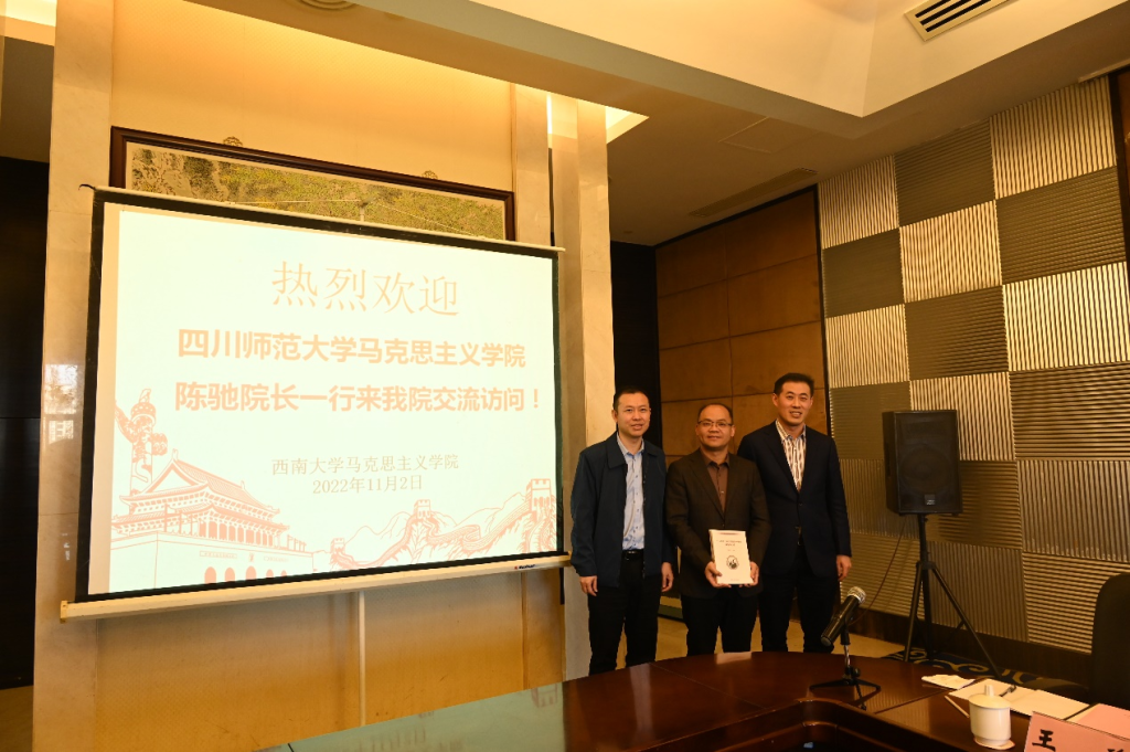 最后,白显良经理和廖晓衡书记向四川师范大学太阳成集团tyc赠送了“马克思主义理论一级学科核心课程教学设计”丛书。