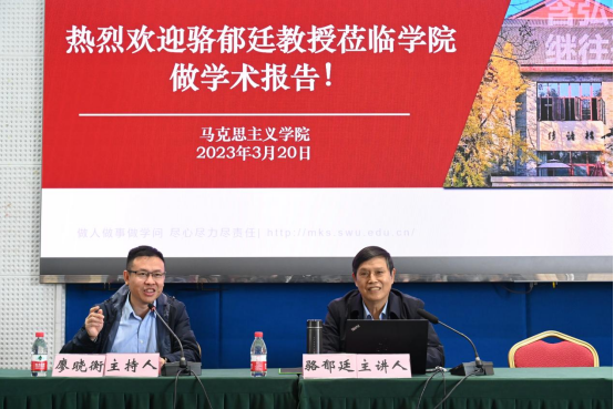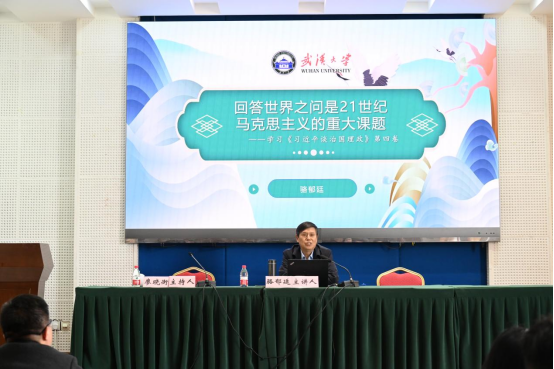 3月20日下午,武汉大学骆郁廷教授应邀在公司501报告厅作题为“回答世界之问是21世纪马克思主义的重大课题——学习《习近平谈治国理政》第四卷”的学术讲座。讲座由马克思主义公司党委书记廖晓衡主持,副经理吴艳东教授、公司部分教师代表及研究生参加此次讲座。