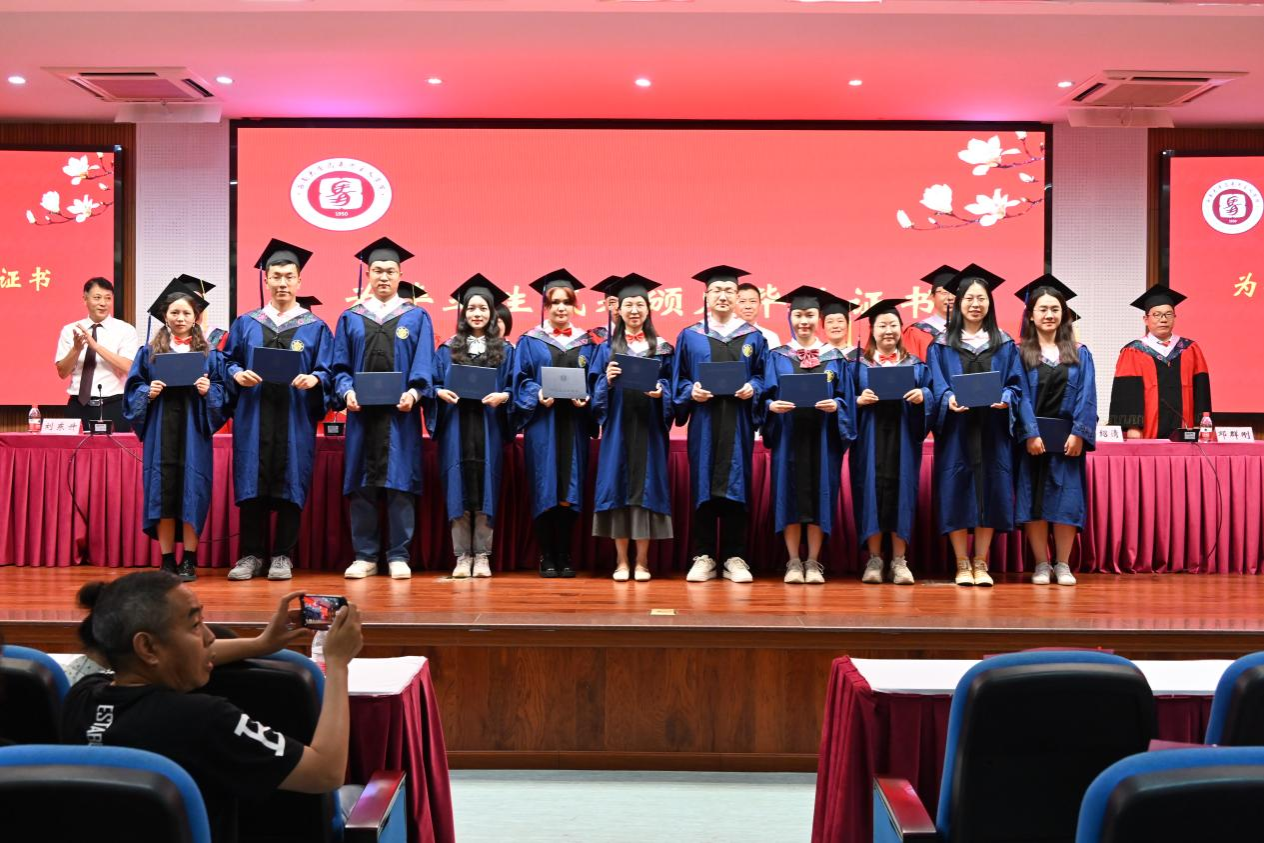 在庄严的国歌声中毕业典礼拉开序幕。公司党委书记廖晓衡研究员首先宣读毕业决定和学位授予决定,在主席台就坐的领导、老师为2023届毕业生代表颁发了毕业证书。