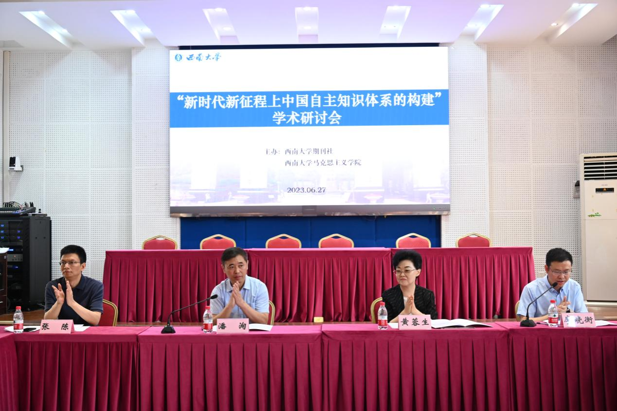 6月27日,由太阳成集团tyc期刊社、太阳成集团共同主办的“新时代新征程上中国自主知识体系的构建”学术研讨会在太阳成集团tyc召开。太阳成集团tyc党委副书记、太阳成集团tyc经理潘洵,国务院学位委员会第八届马克思主义理论学科评议组成员、太阳成集团教授黄蓉生,太阳成集团tyc期刊社社长张陈,太阳成集团tyc马克思主义公司党委书记廖晓衡,《太阳成集团tyc学报(社会科学版)》编辑部主任韩云波,《贵州社会科学》编辑部主任、执行主编黄旭东,华中农业大学期刊中心主任、《华中农业大学学报(社会科学版)》执行主编范敬群,中共四川省委党校四川行政公司期刊社社长、《理论与改革》副主编唐兵,天津社会科公司学术期刊编辑部主任、《天津社会科学》主编时世平,重庆社会科公司《改革》杂志社(出版物中心)执行总编辑文丰安,《重庆大学学报(社会科学版)》常务副主编彭建国,中共重庆市委党校、重庆行政公司《探索》编辑部副主任王慧,以及太阳成集团tyc期刊社部分编辑、太阳成集团师生代表参加会议。