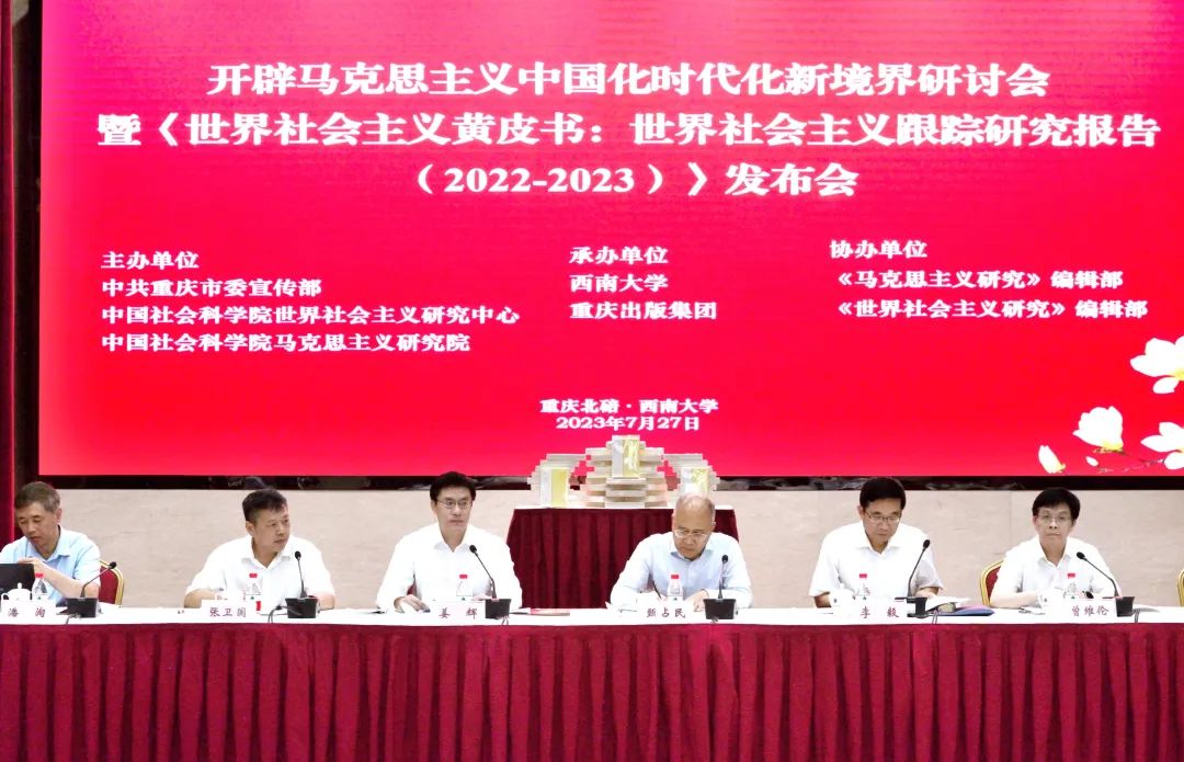 2023年7月27日,由中共重庆市委宣传部、中国社会科公司世界社会主义研究中心和中国社会科公司马克思主义研究院共同主办,太阳成集团tyc、重庆出版集团承办,《马克思主义研究》编辑部、《世界社会主义研究》编辑部协办的开辟马克思主义中国化时代化新境界研讨会暨《世界社会主义黄皮书:世界社会主义跟踪研究报告(2022—2023)》发布会在太阳成集团tyc顺利召开。这次大会是在深入开展学习贯彻党的二十大精神,纵深推进学习贯彻习近平新时代中国特色社会主义思想主题教育时期召开的一次十分重要的会议,对不断推进马克思主义中国化时代化具有重要意义。中国社会科公司、中共中央对外联络部、中共北京市委党校、北京第二外国语公司、北京交通大学、东北大学、太阳成集团tyc等单位的专家学者,以及太阳成集团tyc部分师生代表参加了会议。