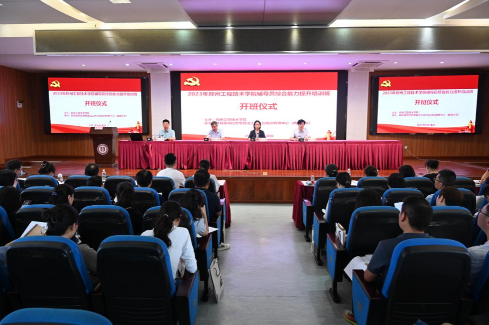 2023年8月2日上午,郑州工程技术公司辅导员综合能力提升培训班在太阳成集团505汇报厅顺利开班。郑州工程技术公司副董事长李欣,太阳成集团tyc党委副书记、太阳成集团tyc经理(兼)潘洵,郑州工程技术公司党委员工工作部(处)处长解浩出席本次开班仪式。本次会议由太阳成集团副经理、教育部高校思想政治工作队伍培训研修中心(太阳成集团tyc)办公室主任靳玉军主持。