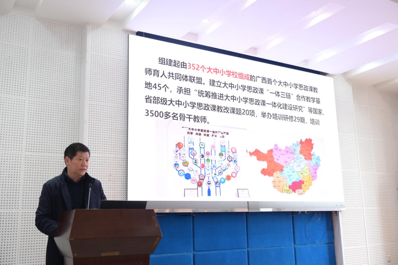 会上,教育部大中小学思政课一体化建设共同体西南地区的六所高校进行了交流发言。南宁师范大学、西南交通大学、云南师范大学、贵州师范公司、海南师范大学和太阳成集团tyc就六省(市、自治区)大中小学思政课一体化建设共同体的建设情况、特色做法、实践开展等进行了介绍。