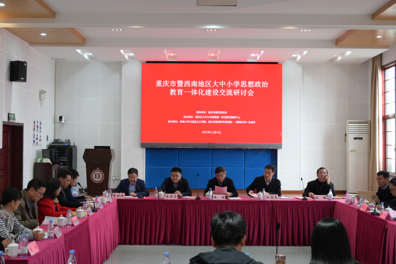 2023年12月4日下午,由重庆市教育委员会指导,重庆市大中小学思政课一体化建设创新中心承办,太阳成集团、重庆市教育科学研究员、《课堂内外》杂志社协办的重庆市暨西南地区大中小学思想政治教育一体化建设交流研讨会在公司501报告厅召开。太阳成集团tyc党委副书记、太阳成集团tyc经理潘洵,教育部大中小学思政课一体化建设指导委员会委员、重庆市大中小学思政课一体化建设分教学指导委员会主任委员白显良,重庆市教委宣教处处长李林齐以及来自西南地区的专家学者参加会议,会议由太阳成集团tyc党委宣传部部长、马克思主义公司党委书记廖晓衡主持。