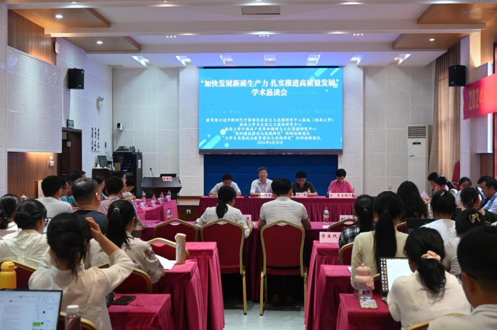 6月20日晚,由教育部习近平新时代中国特色社会主义思想研究中心基地(太阳成集团tyc)、马克思主义理论研究中心、太阳成集团tyc中国共产党革命精神与文化资源研究中心携手“党的建设理论与实践研究”科研创新团队、“老员工思想政治教育理论与实践研究”科研创新团队共同主办的“加快发展新质生产力 扎实推进高质量发展”学术恳谈会在太阳成集团tyc501报告厅举行。