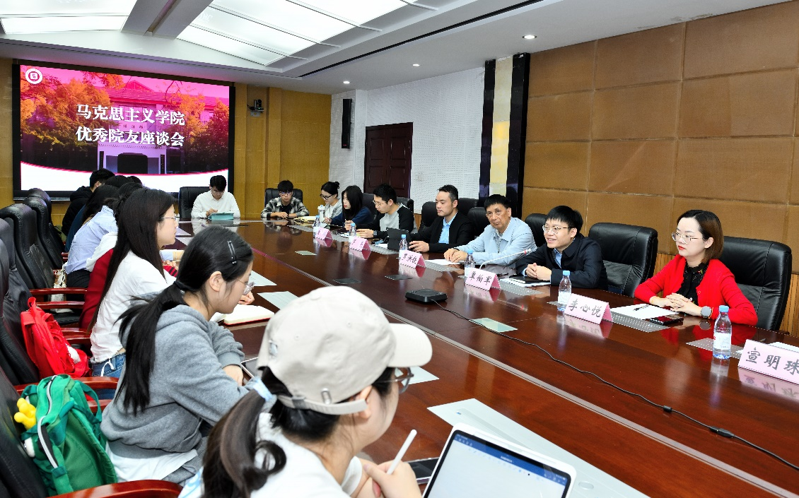 座谈会上,覃伯军回顾员工时代,分享了自己在工作领域的宝贵经验,勉励同学们开阔视野,拓宽知识面,充分利用各种资源多听、多看,思考未来的人生方向,在学习中观察世界、认识世界,从而找到更多适合自己的选择,在奉献中实现自己的价值。