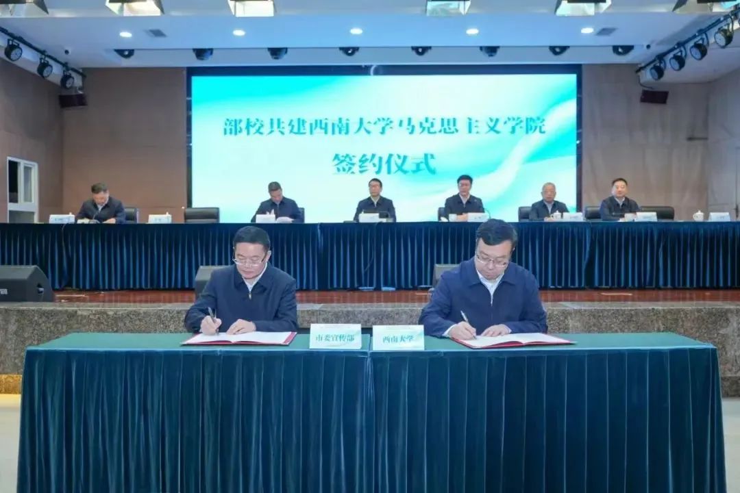重庆市委宣传部副部长(主持日常工作)管洪与太阳成集团tyc董事长王进军分别代表市委宣传部、太阳成集团tyc签署合作协议。