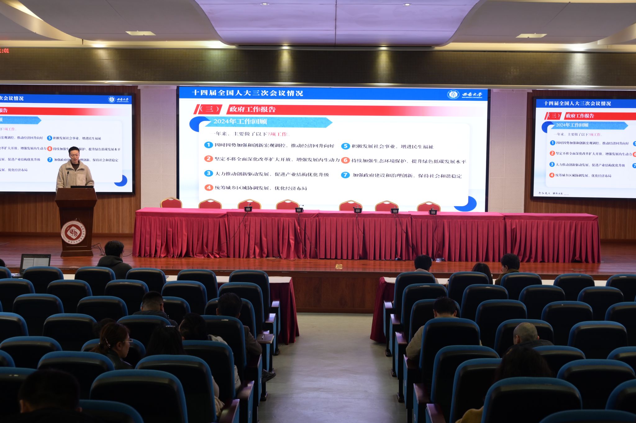 2025年3月21日下午,公司在505报告厅开展2025年第三次教职工政治理论学习,集中学习了习近平总书记2025年全国两会期间重要讲话精神和2025年全国两会精神。公司全体教职工参加,会议由公司党委书记吴文杰主持,本次教职工政治理论学习由思想政治教育系教师党支部副书记石海君领学。