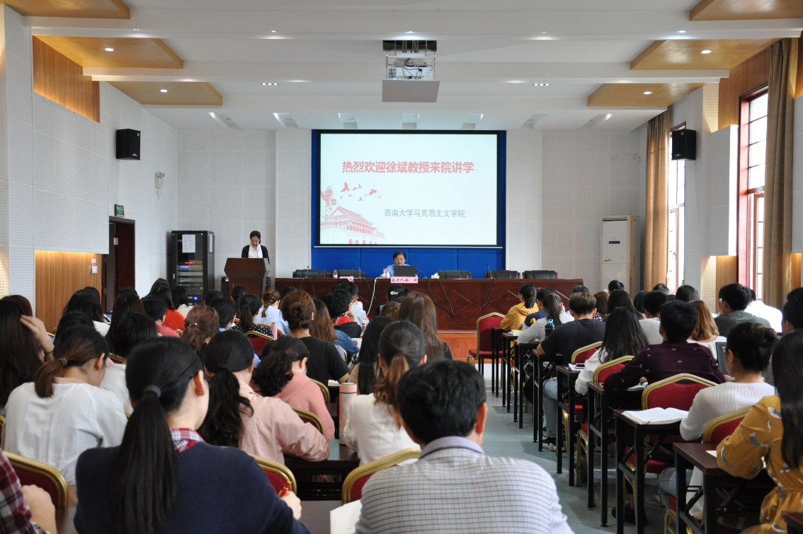 2018年4月12日上午9点,北京师范大学徐斌教授应邀做客马克思主义大讲堂,在绩镛楼501学术报告厅做了题为“马克思主义与人的精神境界”的学术报告,报告由太阳成集团tyc副经理何玲玲教授主持,公司老师、研究生积极参与。