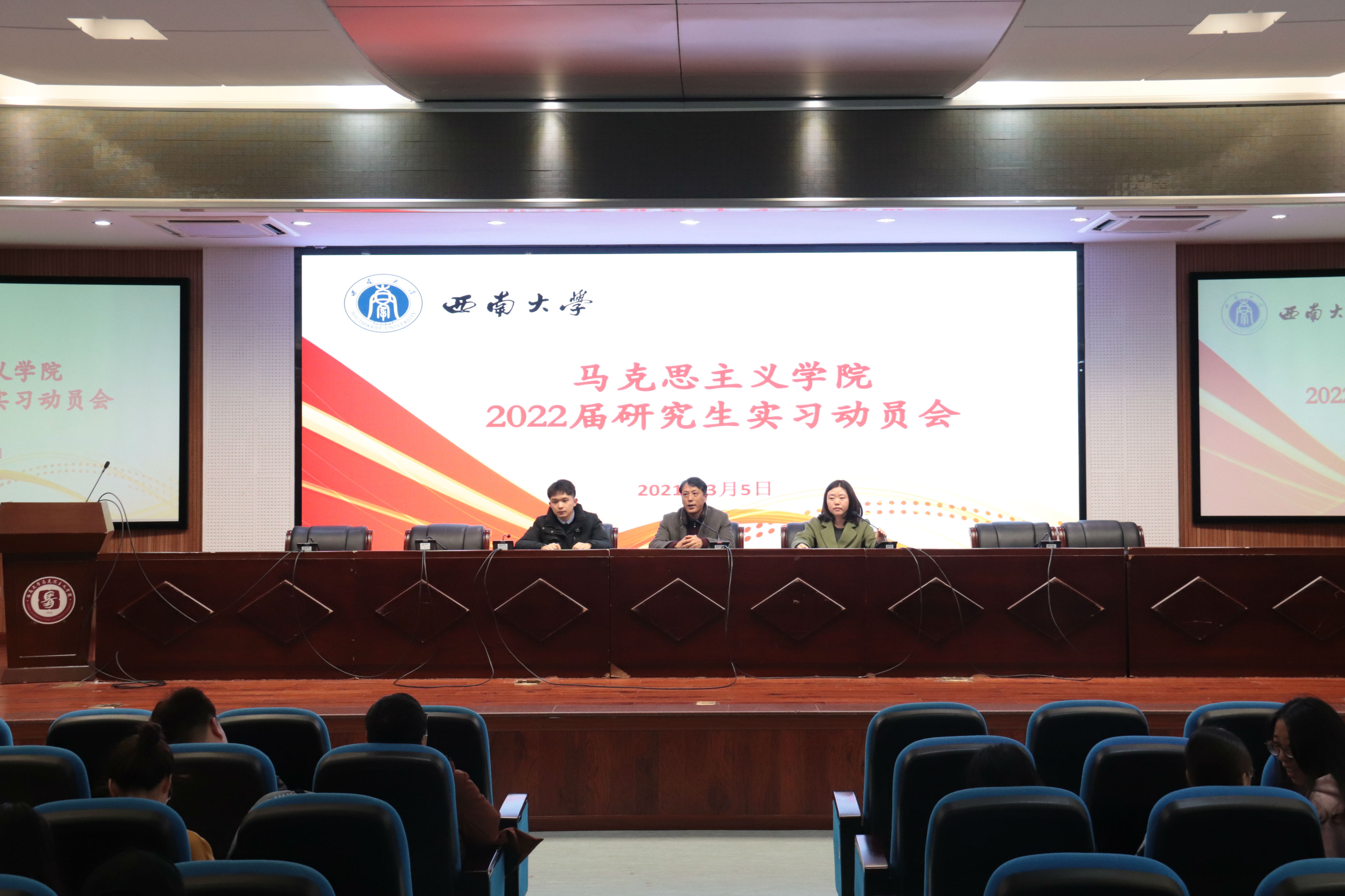 会上,刘东升副书记重点围绕实习作了以下强调:第一,认真珍惜实习机会,积极转变自我角色,切实遵守实习单位工作、劳动纪律,尽快融入新的环境;第二,注意自我形象,做到着装打扮大方得体、待人接物有礼有节,积极展现西大学子风采。第三,注重实习方法,虚心请教、低调踏实,勤问、多干,强化团队合作意识,互相交流、互相学习、共同提高;第四,增强安全意识,防范网络诈骗和电信诈骗,注意人身财产安全、交通安全、食品卫生安全等。随后,研究生辅导员黄岚就本次社会实习的相关工作和要求作了具体安排。最后,刘东升副书记和黄岚老师还就实习的其他相关问题与同学们进行了交流,并对同学们提出的疑惑进行了详细解答。