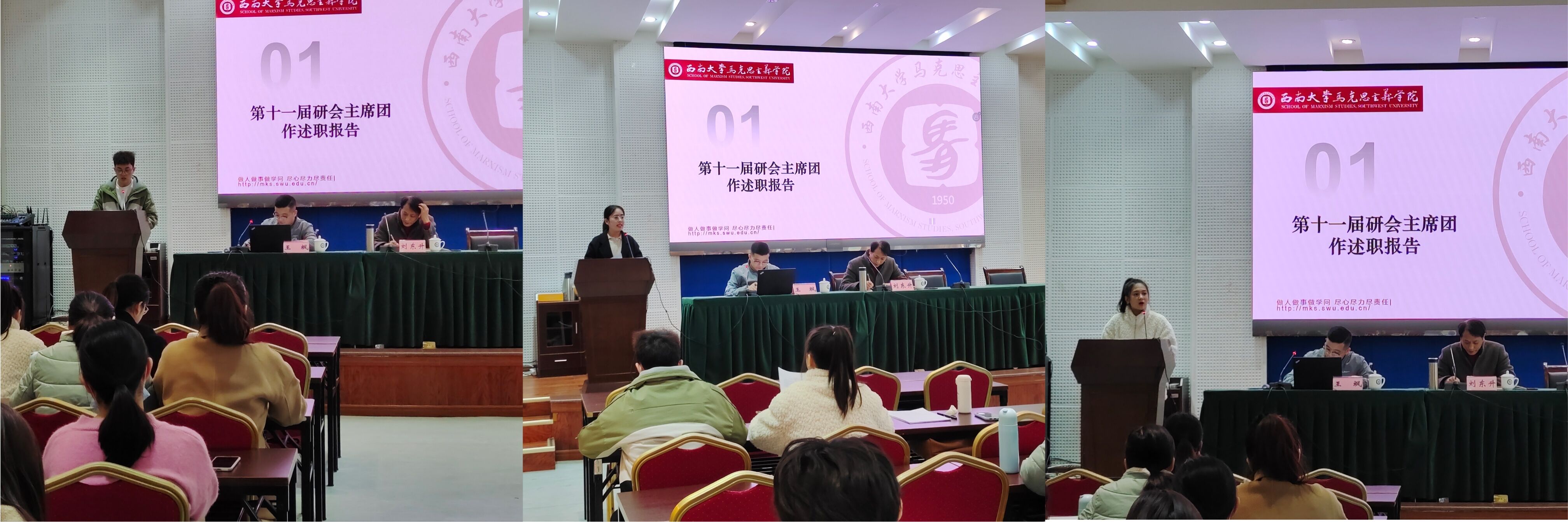 接着由第十二届研会主席团作工作设想报告。第十二届研会主席团代表陈可姝强调研会主席要在公司和研究生之间建立良好的信息传递模式,团结和高效糅合研会成员,指出接下来研会干部要注意组织建设和发展管理指导原则、工作细则和重大问题,设置马院研究生会的规章制度,加强团队建设,构建研究生会成员的激励机制,让马院研究生会在下一次的综合测评中更进一步、更上一层楼。吴贝贝强调研会要坚持为老师和同学们办实事、办好事的宗旨,秉持完成本职工作的理念,加强干部自身素质建设,推进研会体制改革,加强研会宣传力度,加强研会、研会成员、研究生之间的联系。刘大鹏指出要沿用上学年研会工作中的“好办法”,改进综合考核的“老办法”,探索与校级组织、本科员工会联动的“新办法”。同时,他指出未来研会工作要“刀刃向内”,加强“对外交流”,真正做到服务同学,营造研会宣传氛围,增加为同学办事的深度,提升为同学服务的温度,提高工作的速度,扩展研究生会工作的广度,努力建设一支高服务、高质量、高效率的研究会工作队伍。