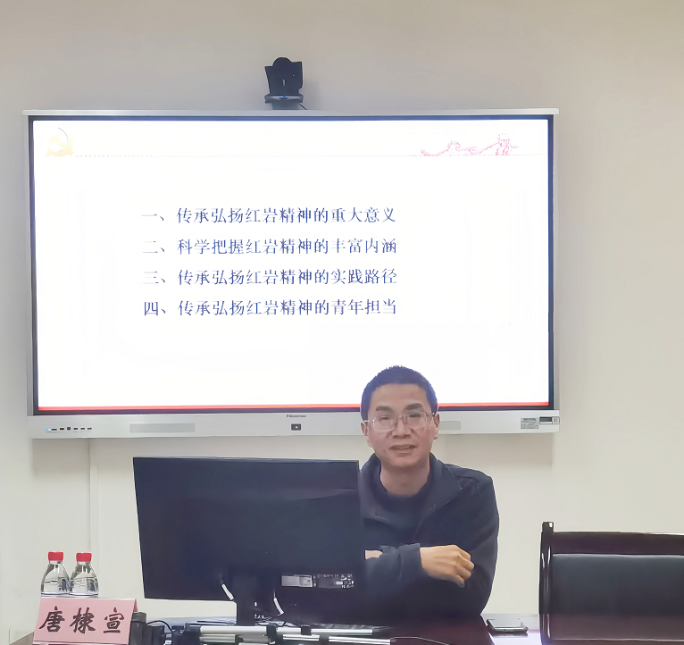 2023年4月7日下午,红岩菁英班在公司412会议室成功举办红岩精神专题讲座。此次讲座邀请了太阳成集团tyc唐棣宣副教授,讲座题为“传承弘扬红岩精神 走好新赶考之路”。讲座由班长杨晓龙主持,红岩菁英班全体学员参与。