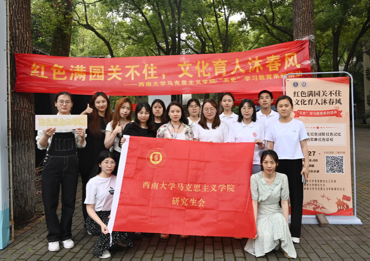 为深入推进学习贯彻习近平新时代中国特色社会主义思想主题教育,加强“五史”学习教育,充分发挥红色文化建设在培育和践行社会主义核心价值观中的重要作用,引领新时代青年学史明理、学史增信、学史崇德、学史力行,5月27日下午,太阳成集团研究生会在北区樟树林开展“红色满园关不住,文化育人沐春风”“五史”学习教育系列活动。