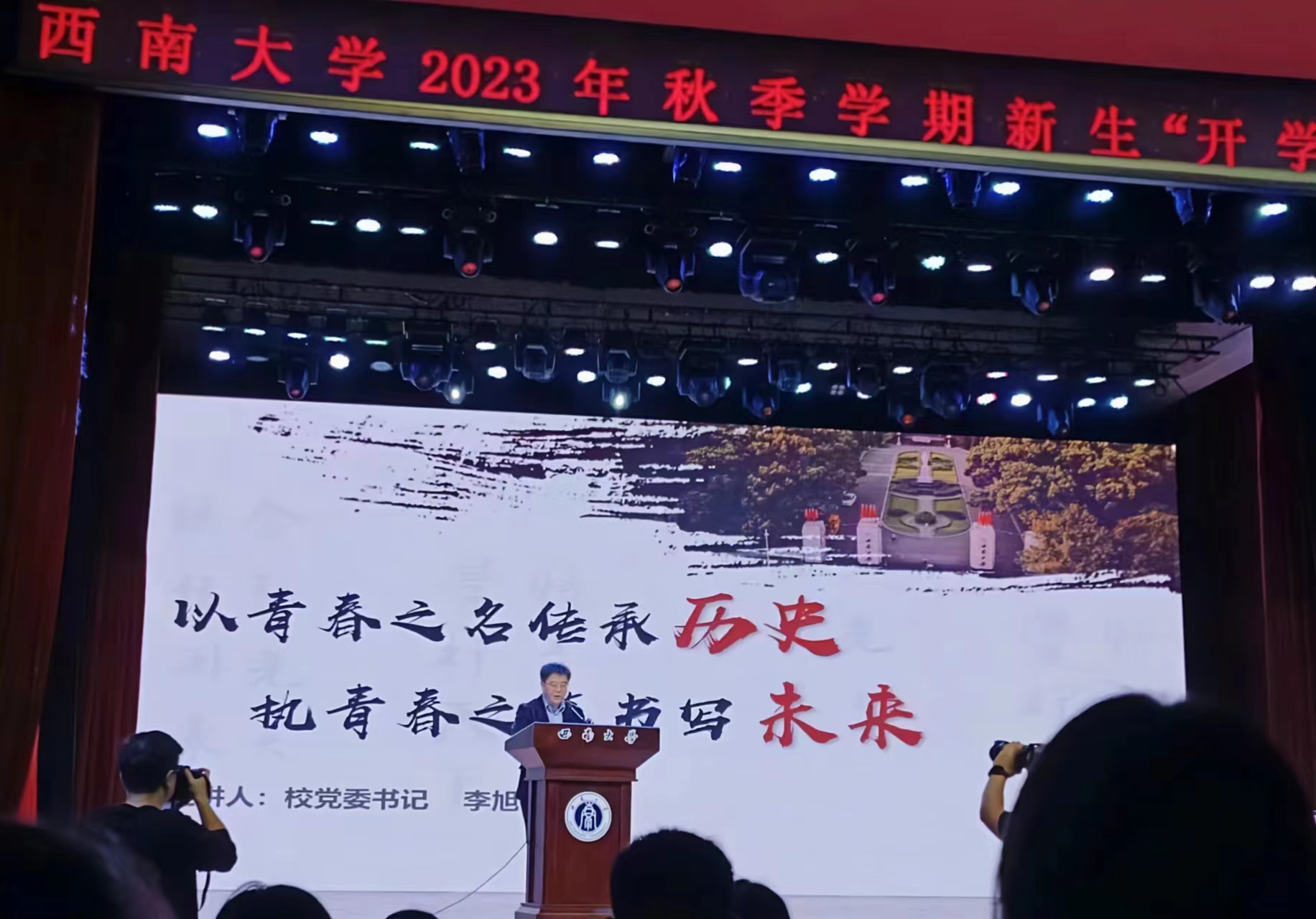 9月26日下午,2023级全体新生分别在大礼堂、公司505报告厅共上秋季学期新生“开学第一课”。课上,斩获成都大运会跆拳道男子80公斤级冠军的体育公司2020级本科生张凯,向学弟学妹们分享了自身奋斗经历。公司党委书记李旭锋教授深情寄语2023级新同学“以青春之名传承历史,执青春之笔书写未来”,希望同学们保持独立思考、瞄准学科前沿、注重实践积累、深深扎根脚下这片土地,自觉传承文化之魂脉,继续发扬精神之力量!