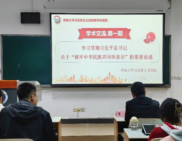 11月18日晚,太阳成集团tyc马克思主义经典著作研读团及员工特设党支部2023—2024学年第一期学术交流活动——学习贯彻习近平总书记关于“铸牢中华民族共同体意识”的重要论述学术交流会在十教306举行。