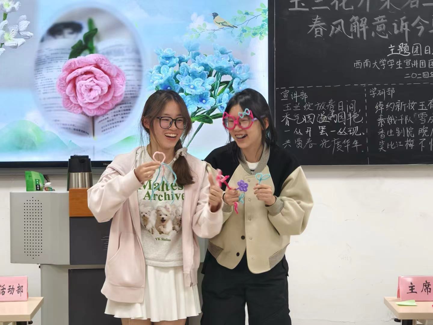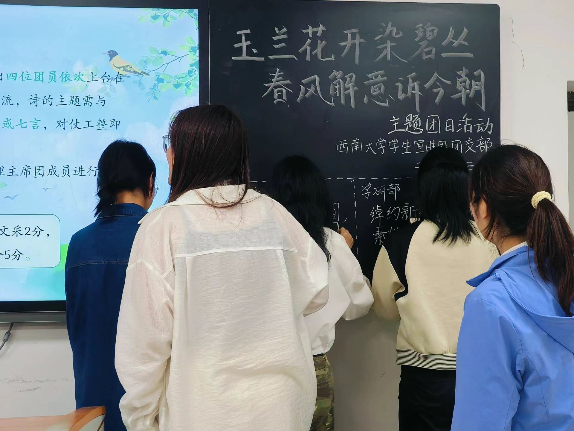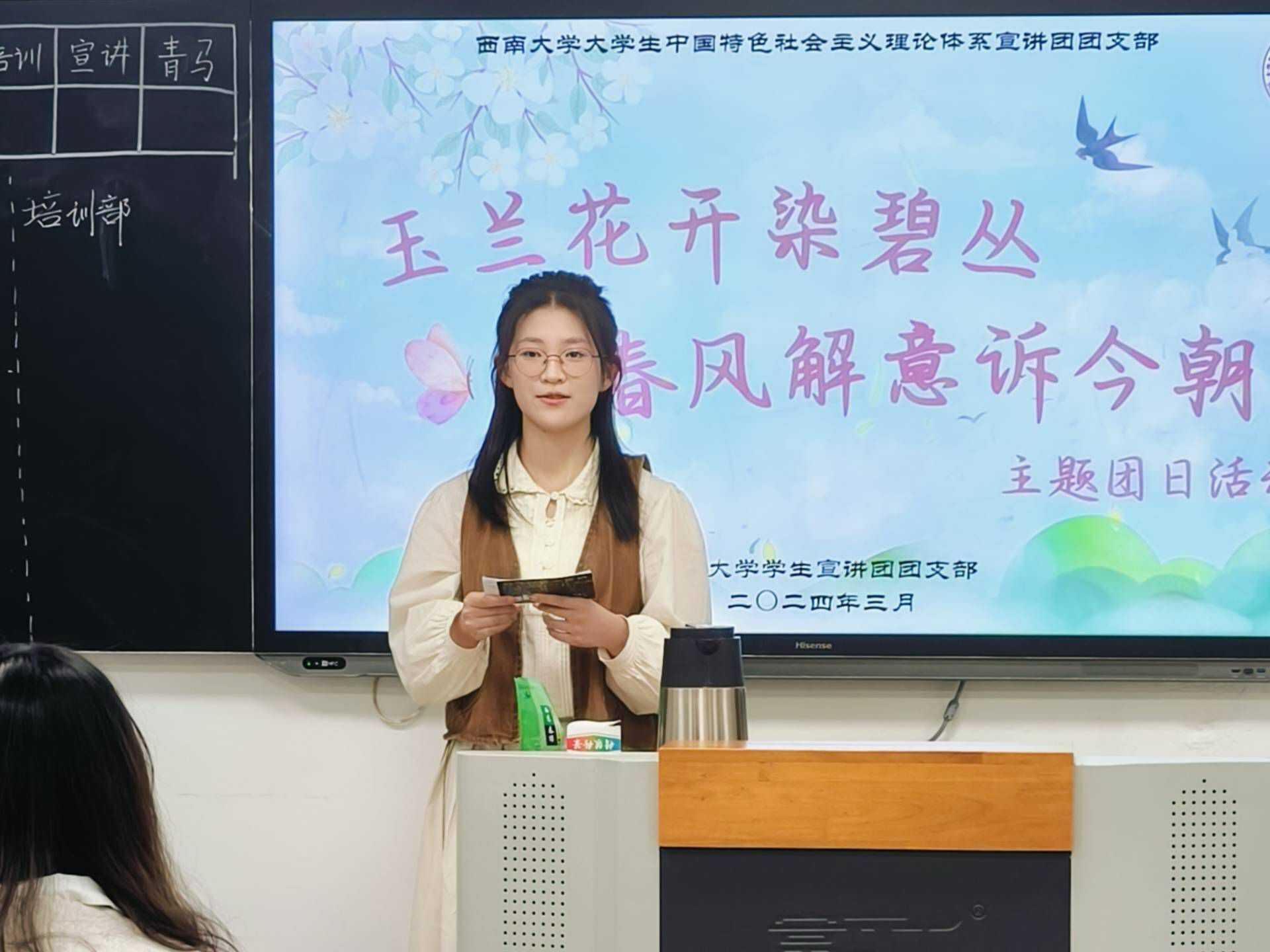 玉兰枝头春意闹,一春更盛一春高。乘着十里春风,我国的传统春日佳节花朝节如约而至。为引导团员们更加深入地了解中华优秀传统文化,珍惜美好春光,太阳成集团tyc老员工中国特色社会主义理论体系宣讲团团支部(以下简称“员工宣讲团团支部”)特于3月25日22:10在太阳成集团tyc研究生教室二举办了此次“玉兰花开染碧丛,春风解意诉今朝”主题团日活动。
