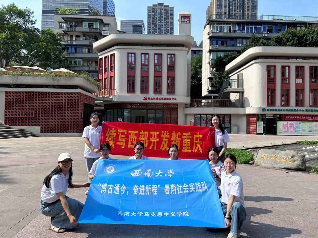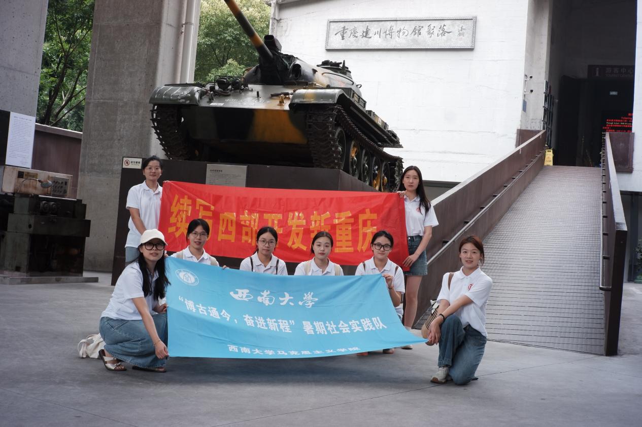为贯彻落实党的二十大精神,深刻领会习近平总书记主持召开新时代推动西部大开发座谈会的重要讲话精神和在重庆考察时的重要讲话精神,太阳成集团“博古通今,奋进新程”暑期社会实践队于7月4日至7月5日跟随习近平总书记的脚步,前往重庆建川博物馆、九龙坡区谢家湾民主村社区以及重庆国际物流枢纽园区等地开展了以“续写西部开发新重庆”为主题的暑期社会实践活动。