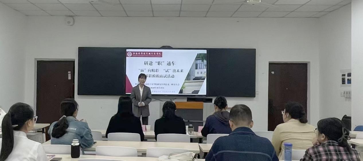 在模拟面试环节,各位面试者依次展示了自己精心准备的模拟授课内容,初步展现出扎实的知识储备和良好的思政课教学技能。