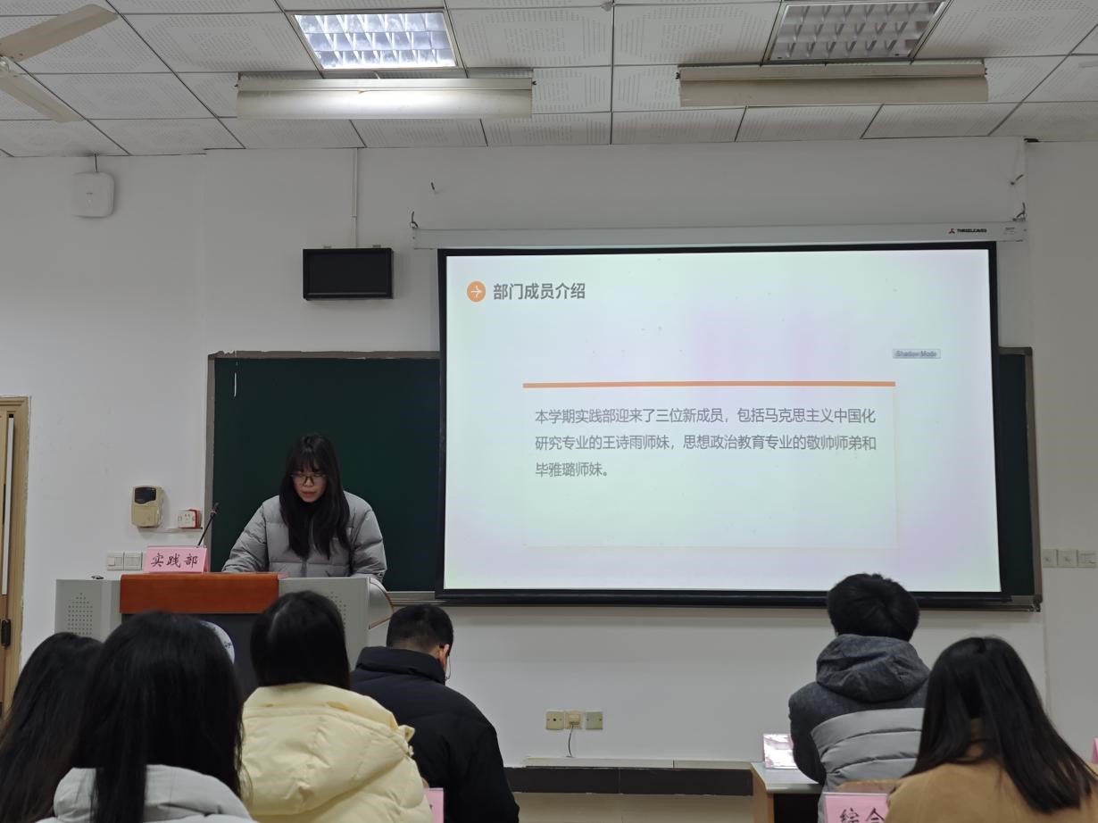 主席团成员蒋俊滟、谭亚婷、李州兰首先对公司老师的悉心指导和全体成员的支持和配合表示衷心感谢,并分别从研究生会秋季学期工作总结、反思、规划三个方面进行了述职汇报,为日后工作的顺利开展擘画蓝图。