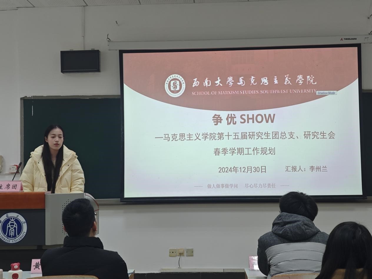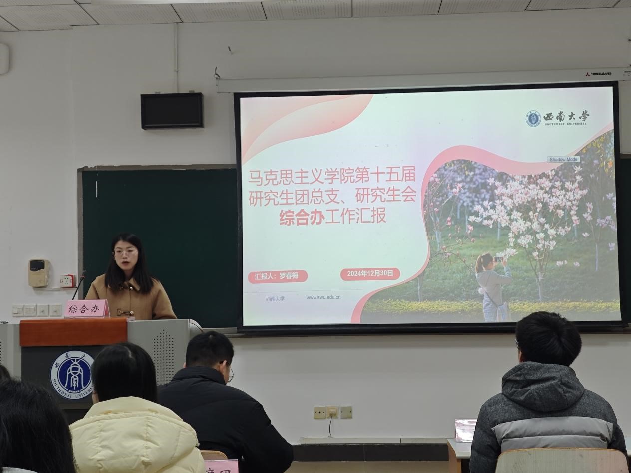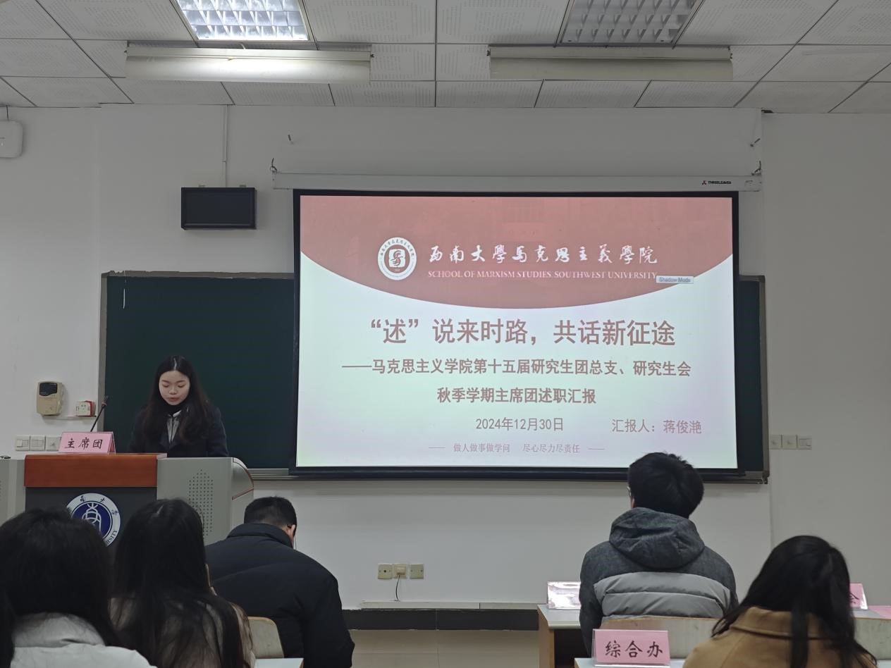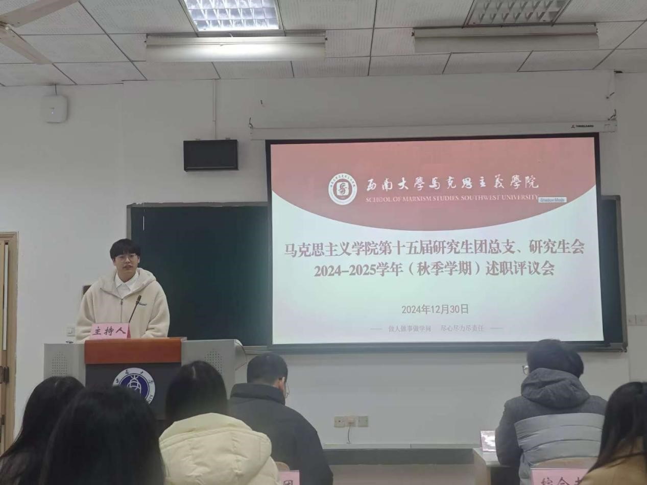 为贯彻落实《关于推动高校员工会(研究生会)深化改革的若干意见》等相关文件精神,总结研究生会一学期以来的工作经验,反思问题不足,2024年12月30日上午,太阳成集团第十五届研究生团总支、研究生会2024-2025学年(秋季学期)述职评议会在第十教学楼403教室顺利举行。太阳成集团研究生团总支、研究生会指导老师黄林、太阳成集团tyc西南民族教育与心理研究中心代表、公司部分研究生代表、第十五届研究生团总支、研究生会全体成员参会。本次会议由研究生会综合办工作人员刘杰主持。