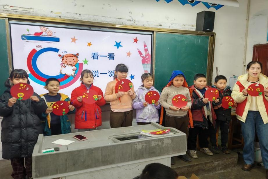 开展实践教育,提升动手能力与解决问题的能力。实践队员为二、三年级的员工们带来了一场别开生面的手工课,他们指导同学们用彩泥制作出国旗和向日葵图案,并组织大家开展了一系列趣味游戏,增进了同学之间的友谊,为课余生活增添了乐趣。