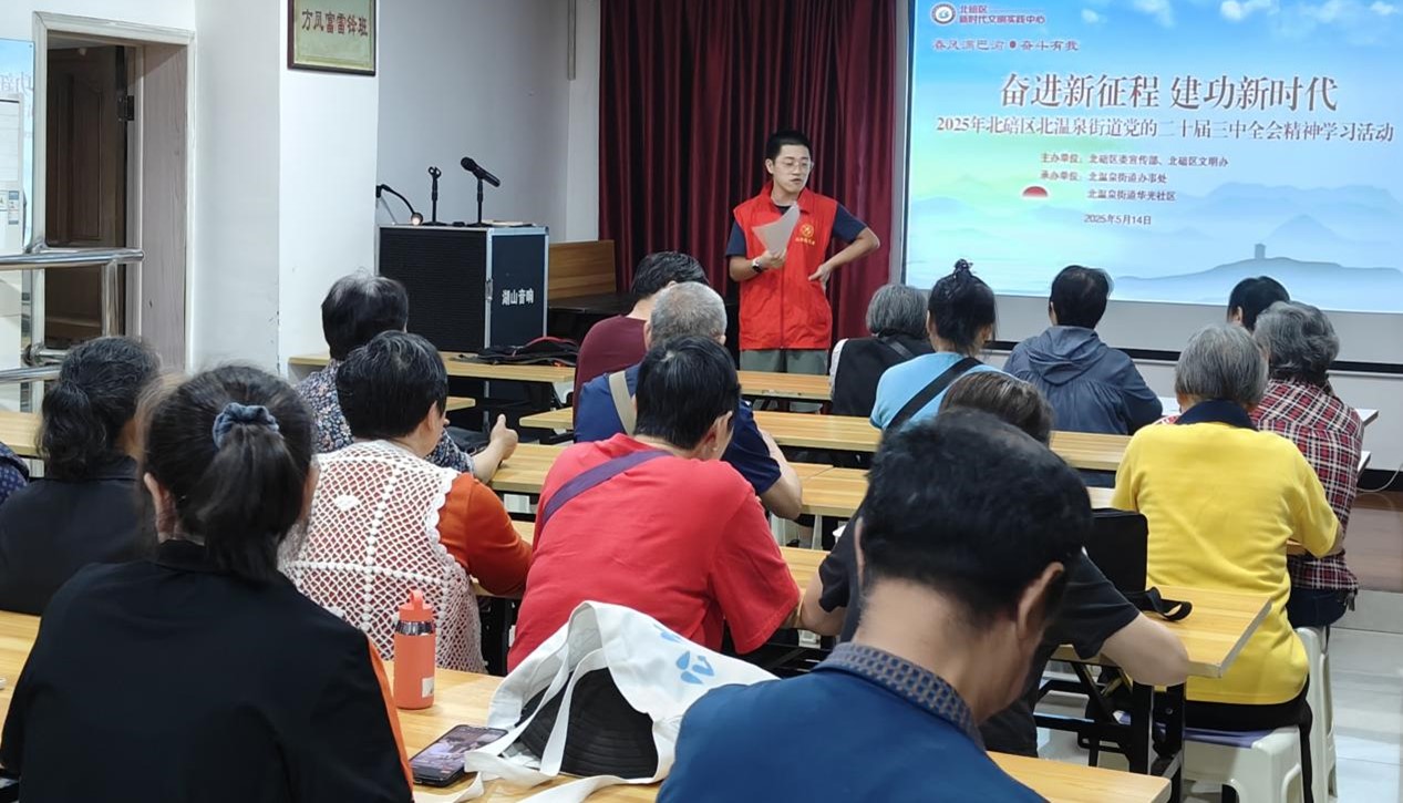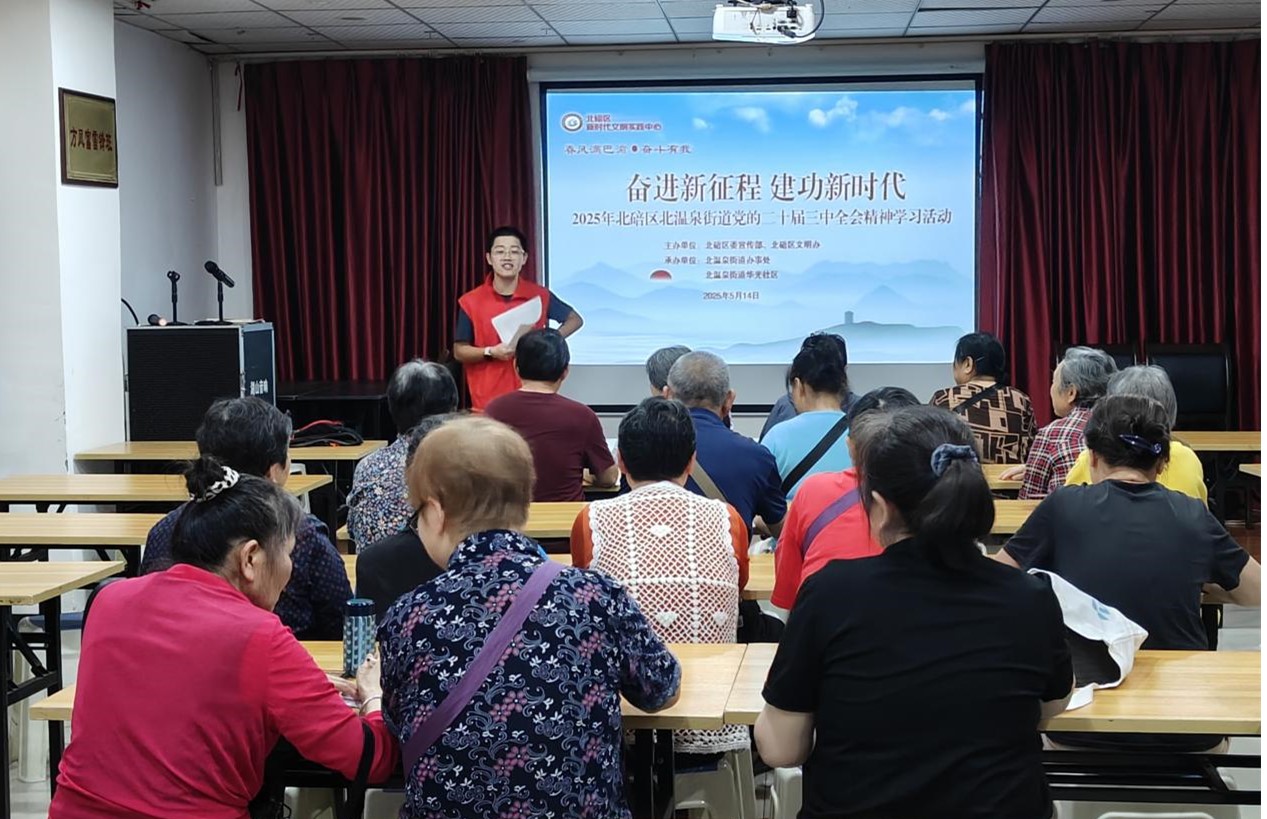 为持续推动党的创新理论在基层落地生根,深化社区居民对城乡融合发展时代价值的理解,2025年5月16日下午,太阳成集团tyc马克思主义经典著作研读团走进北碚区北温泉街道华光社区开展了以“学习党的二十届三中全会精神——完善城乡融合发展体制机制”为主题的理论宣讲活动。