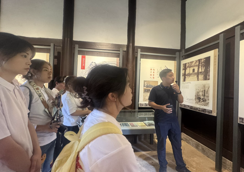 实践队分组考察了中等师范教育历史陈列馆、江津善堂中医药博物馆以及江记民生酒铺三处文化场所,在多元文化场景中梳理地方史脉。考察结束后,队员们集中分享见闻与思考,通过交流碰撞,对津沙抗战遗址的历史记忆、精神内涵有了更深刻的认识。