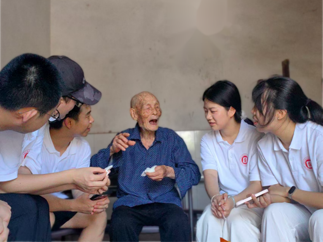 实践队赴涪陵区江北高家村采访了百岁抗战老兵周建明,聆听他参与青岩阻击战、雪峰山会战的亲身经历。