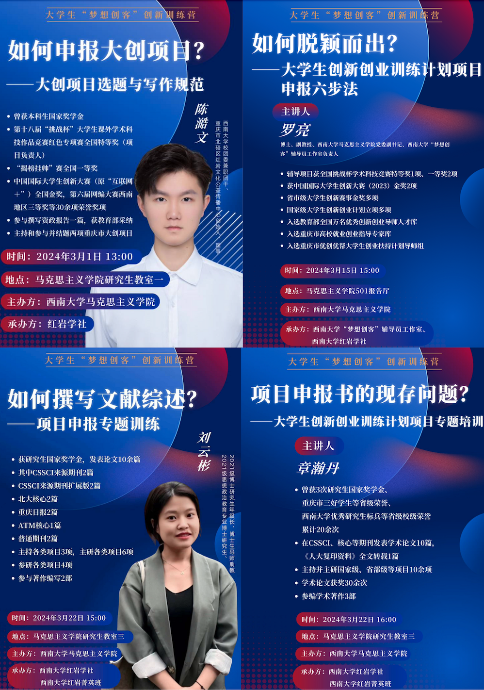 为提升员工科学研究和创新实践能力,3月1日至3月22日,公司依托“梦想创客”辅导员工作室、红岩学社和红岩菁英班,以大创项目为牵引,衔接挑战杯与中国国际老员工创新大赛,推进老员工创新实践能力提升“筑梦”行动,举办了四次老员工创新创业训练计划项目专题培训。