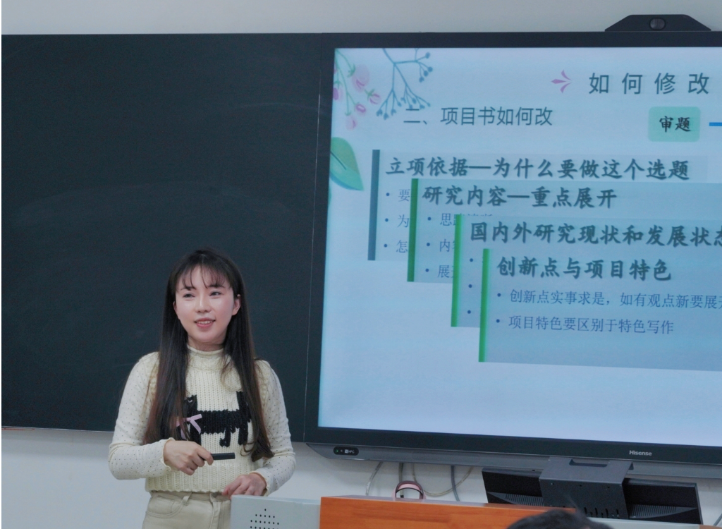 在本次专题培训末尾,由章瀚丹老师针对同学们提交的老员工创新创业训练计划项目申报书存在的共性问题和个性问题进行点评和解惑。一方面指出了申报书现存的问题:题目存在歧义且破题不准,立项依据缺乏针对性、层次性和逻辑性,研究内容总体框架“摊大饼”与“瘦弱小”并存、研究对象把握不准确、基本思路的方法、思路与综述“杂糅”,国内外研究现状存在只“综”不“述”、有“述”无“综”和“述”而不“综”的问题;另一方面针对现存问题,详细讲解了申报书如何修改。
