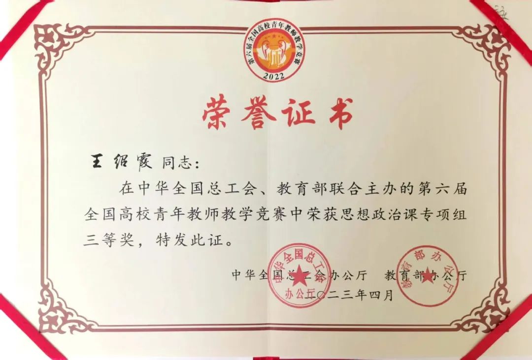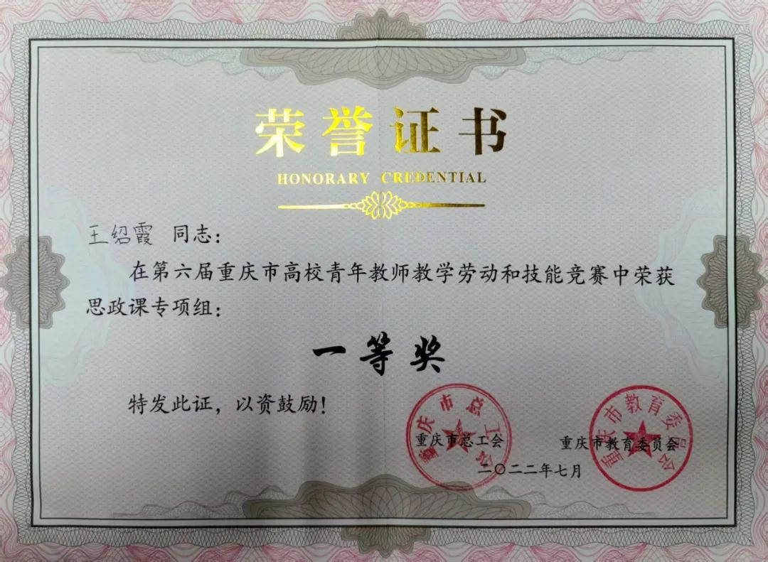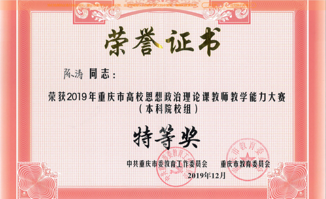 团队骨干成员入选国家级一流本科课程、教育部课程思政示范课程和优秀教学团队、教育部高校思政课“手拉手”集体备课中心(太阳成集团tyc)、教育部高校思政课名师工作室(太阳成集团tyc)、重庆市一流本科课程等优质课程建设平台。获国家社科基金思政课专项重点项目、重庆市教学成果一等奖、全国高校青年教师教学竞赛思想政治课专项组三等奖、重庆市五一劳动奖章、重庆市高校青年教师教学劳动和技能竞赛思政课专项组一等奖、重庆市高校思想政治理论课教师教学能力大赛(本科院校组)特等奖等多项荣誉。指导员工获“挑战杯”全国老员工课外学术科技作品竞赛三等奖、全国高校老员工讲思政课公开课展示活动二等奖、“华文杯”全国师范生政治学科教学能力测试与展示交流活动一等奖等共10余项奖项。