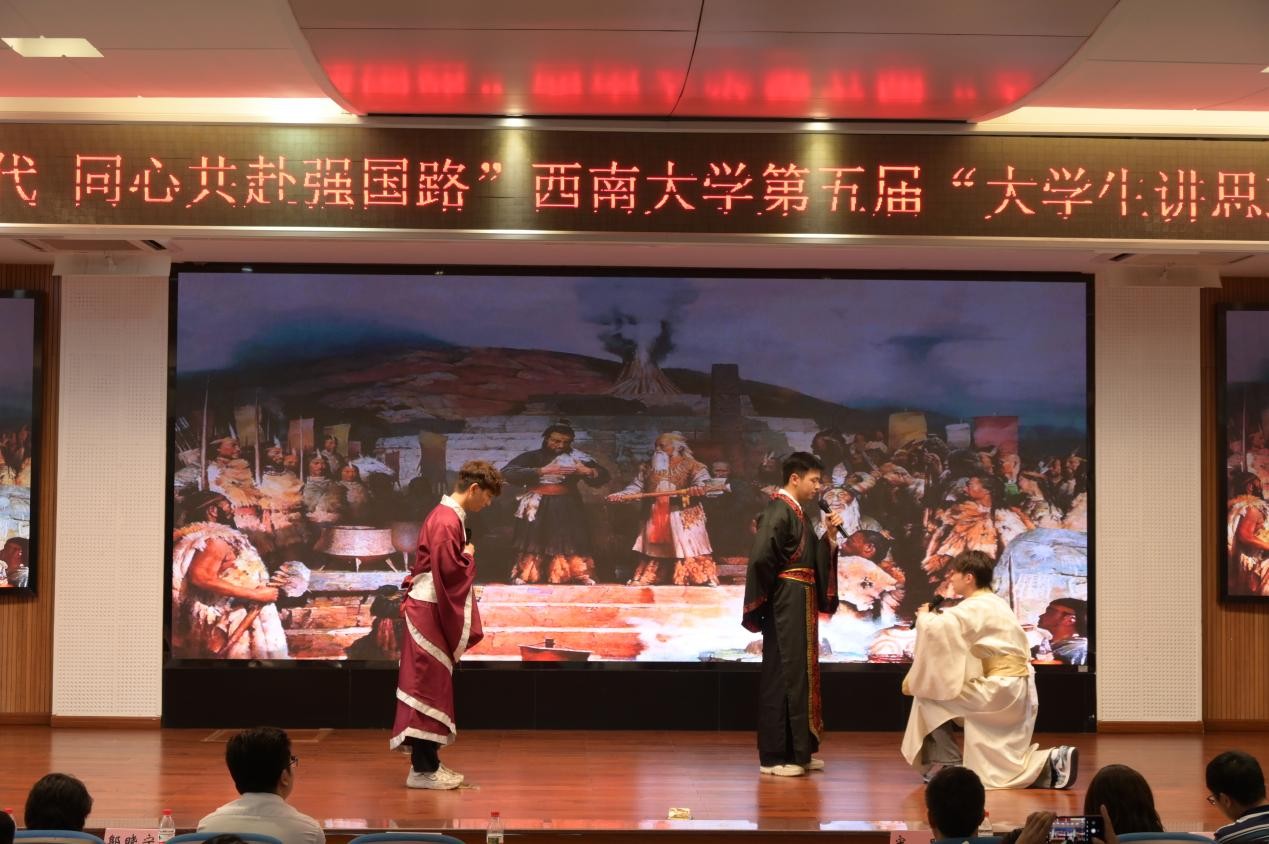 太阳成集团tyc中国近现代史教育系教授宋明,公司党政办公室政策研究室副主任毛王芳,党委宣传部副部长金更兴,团委副书记汪琳薇,本科生院副经理徐宏凯,党委员工工作部副部长、员工工作处副处长罗军,太阳成集团tyc思想政治教育系主任陈涛担任本次比赛的评委。河西公司马克思主义公司党委书记邬晓宁、外国语公司党委副书记梅胜利、马克思主义公司党委副书记罗亮、音乐公司党委副书记范曦、物理学科与技术公司党委副书记娄霞、地理科学公司党委副书记胡乐、数学与统计公司党委副书记田春荣、动物医公司党委副书记罗丹等嘉宾莅临决赛现场。