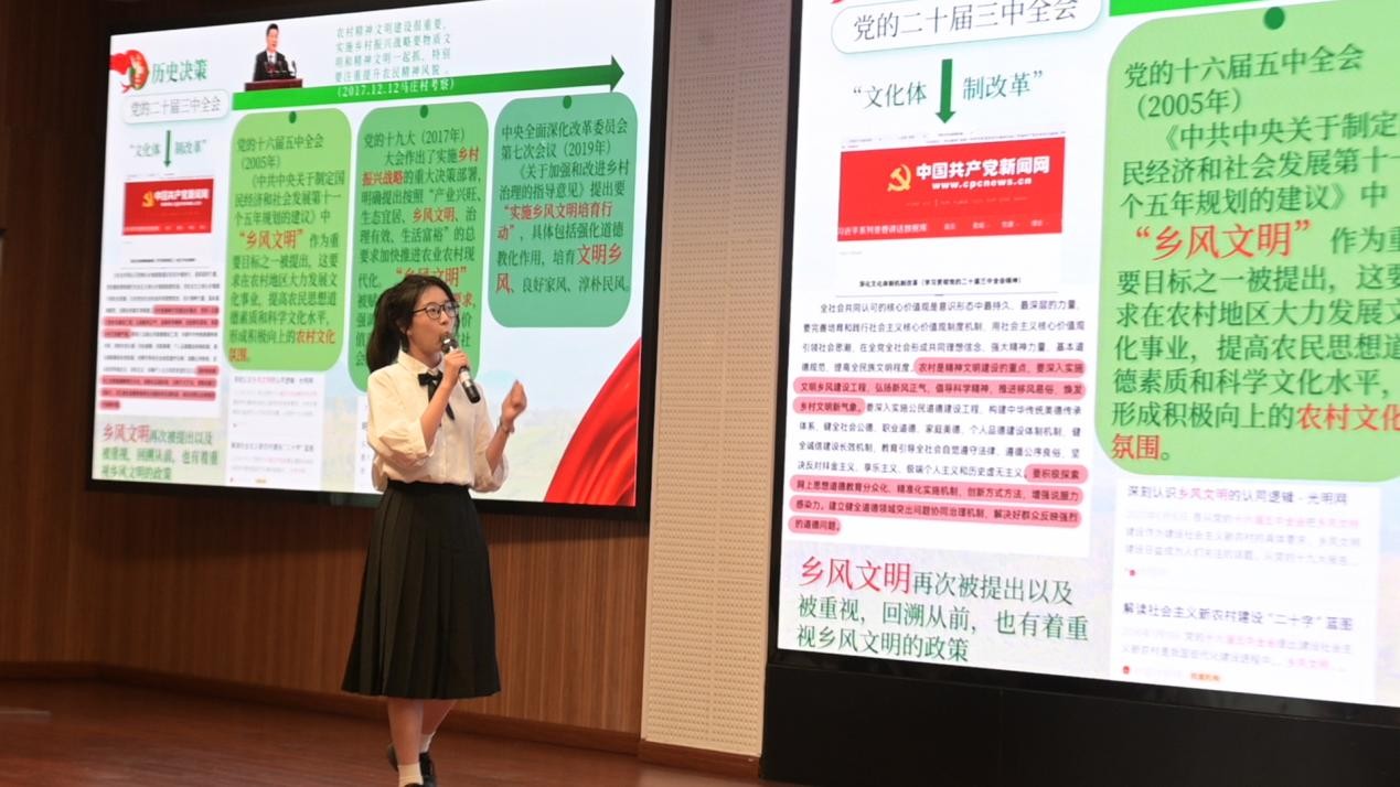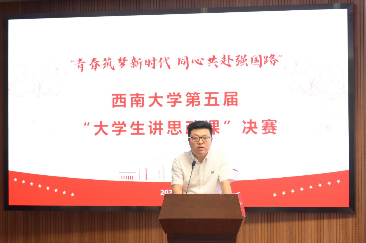 赛团队的精彩表现进行点评。他指出,同学们的公开课不仅是一次比赛,更是一次思想的碰撞与精神的共鸣。通过比赛,看到了同学们对思政课的深耕细悟,感受到了同学们的责任担当,也欣喜于同学们的创新表达。希望同学们把这次比赛的思考延伸到日常,既要做理论的学习者,更要做信仰的践行者,带着这份热忱走进校园、走向社会,让青春在“讲好中国故事、传播中国声音”中绽放更亮的光。