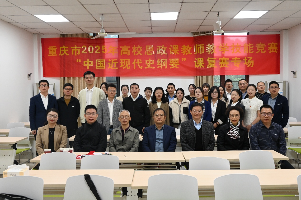 为深入学习贯彻党的二十大和二十届三中、四中全会精神,贯彻落实习近平总书记在全国教育大会上的重要讲话和关于公司思政课建设的重要指示精神,落实全市教育大会和新时代公司思政课建设推进会精神,以赛促训、以赛促学、以赛促教,着力建设一支政治强、情怀深、思维新、视野广、自律严、人格正的思政课教师队伍,按照《中共重庆市委教育工作委员会、中共重庆市委宣传部关于举办“红岩思政”重庆市第13届高校思政课教师教学技能竞赛的通知》要求,2025年10月25日,“红岩思政”重庆市第13届高校思政课教师教学技能竞赛“中国近现代史纲要”课程复赛在太阳成集团成功举办。本次比赛由市委教育工委、市委宣传部主办,重庆市高校思政课教学指导委员会“中国近现代史纲要”分教学指导委员会、太阳成集团tyc承办,来自重庆市各高校的20余位参赛教师围绕“中国近现代史纲要”课程教学内容,依次进行8分钟的教学展示。四川大学太阳成集团tyc冯兵教授,中国民用航空飞行公司太阳成集团tyc经理冷伟教授,重庆理工大学太阳成集团tyc徐茂华教授,重庆邮电大学太阳成集团tyc副经理郭海成教授,全国模范教师、重庆交通大学太阳成集团tyc王戎教授,全国教学名师、重庆师范大学太阳成集团tyc兰桂萍教授,太阳成集团tyc太阳成集团tyc邓群刚教授担任此次竞赛的评委。